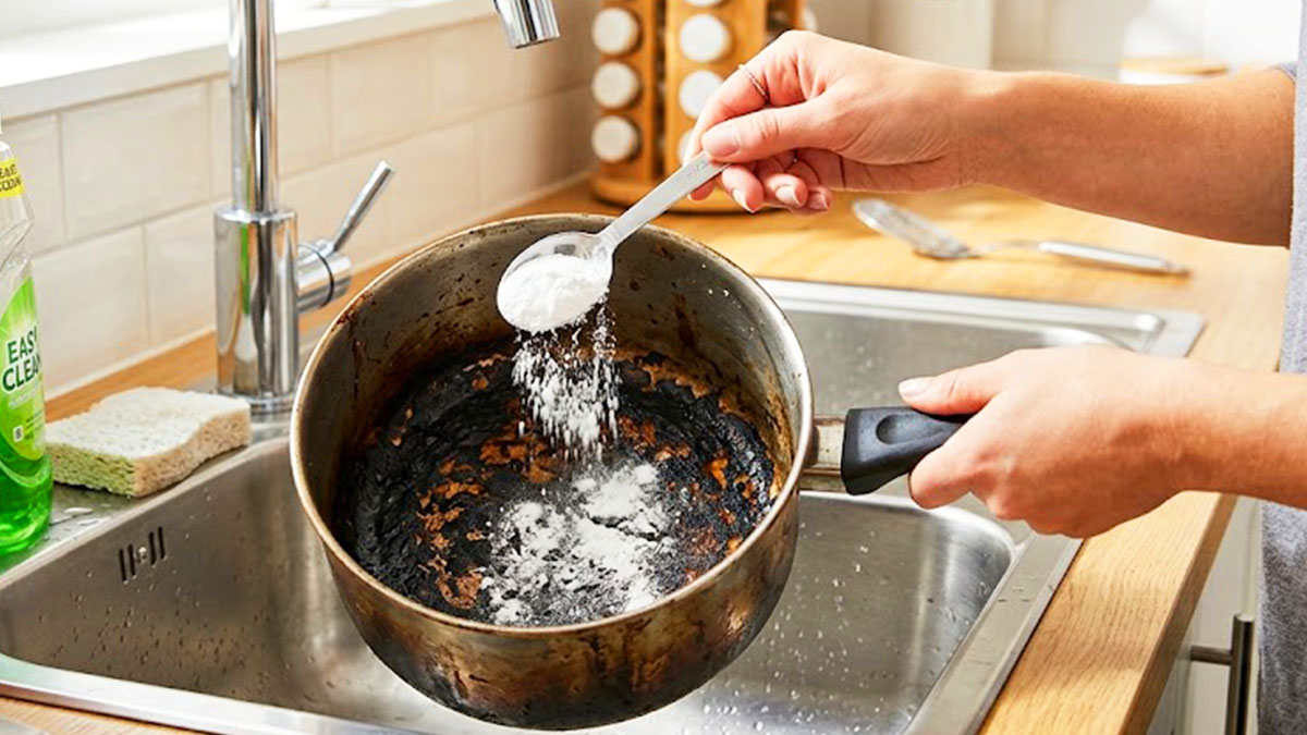 베이킹소다와 식초, 소금. 냉장고와 찬장에 이미 있는 재료들이 해법이다. 핵심은 탄화물의 성질에 맞는 방법을 고르는 것이다.